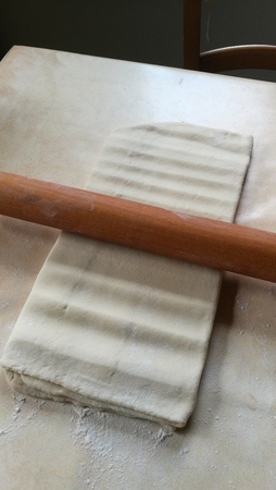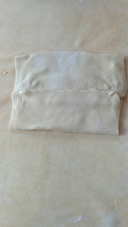 La pâte feuilletée levée ne nécessite qu’un tour double et un tour simple, contrairement à la pâte feuilletée qui nécessite six tours.