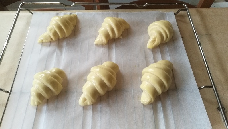 Préchauffez le four à 180° (th6) chaleur tournante et enfournez les croissants pour 20 minutes de cuisson.