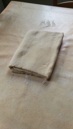 Procédez au tour simple en repliant le premier tiers vers le milieu du pâton et le troisième tiers sur le premier