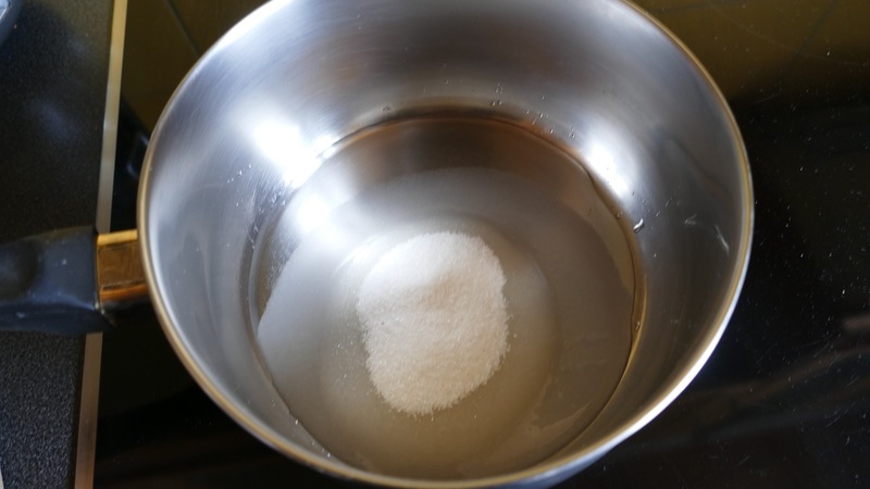 Verser l’eau dans une casserole et ajoutez y le sucre.