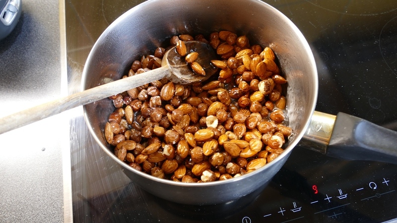 L’ensemble va prendre une belle couleur de caramel doré. Attention de ne pas faire brûler le caramel car le praliné deviendrait amer.