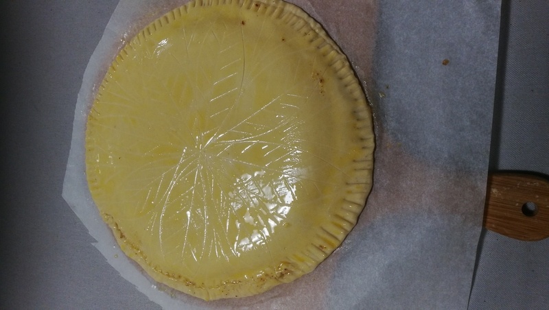 Dorer la galette avec un oeuf battu. Une seule couche suffit