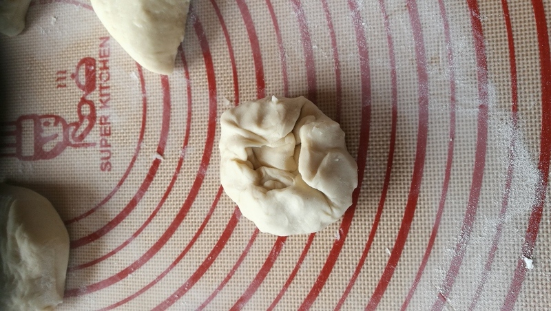 Aplatir chaque pâton puis le plier un tiers sur lui même en le soudant avec la paume.