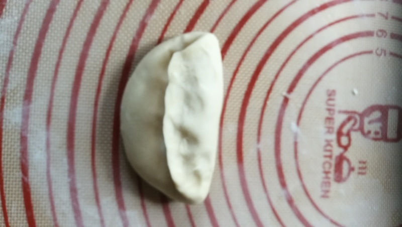faire de même avec l’autre tiers et enfin replier en deux pour obtenir un pain ovale d’une longueur d’environ 10 à 12 cm.