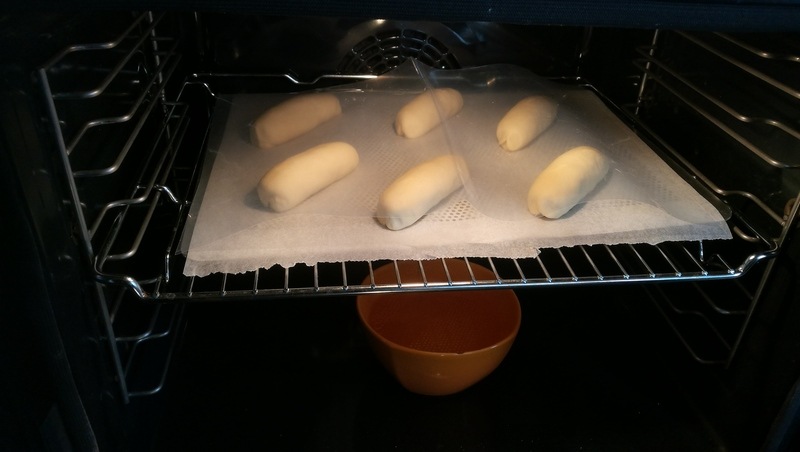 Les recouvrir d’un film et les mettre en pousse pendant 1 h 30 à 2 heures. L’idéal est de le mettre dans le four chauffé à 30 ° maximum dans lequel on ajoute un bol d’eau chaude pour apporter de l’humidité pendant l’apprêt.