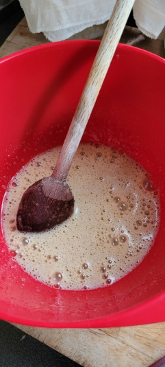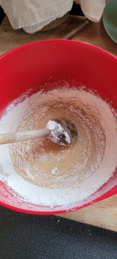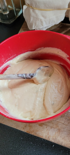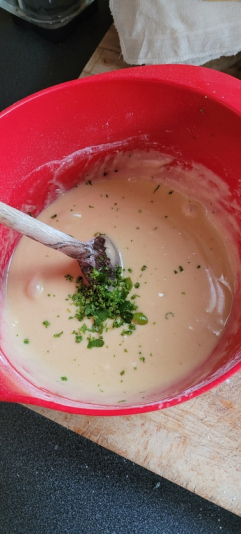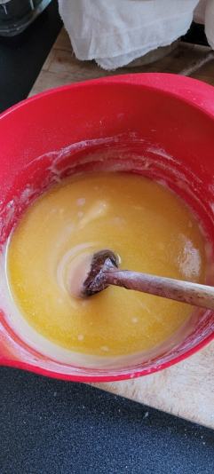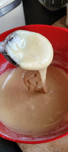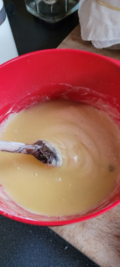 Vous allez obtenir un pâte assez liquide, c’est normal car elle va s’émulsifier par la suite quand le citron réagira avec le beurre.