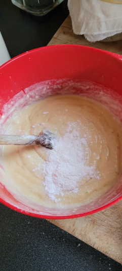 Versez le tout dans un moule à cake beurré et légèrement fariné