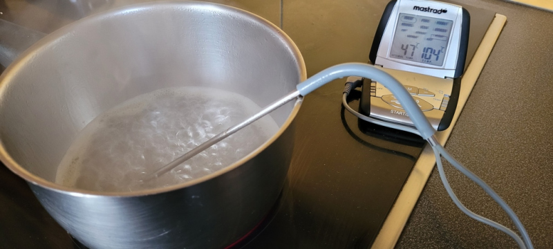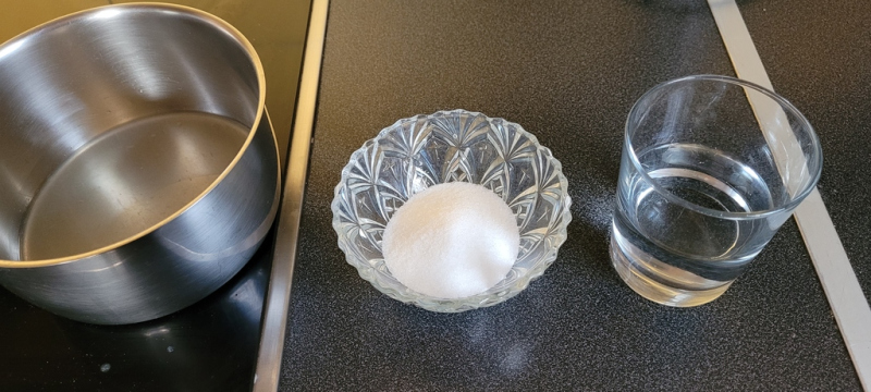 A 10 minutes de la fin de cuisson, préparez un sirop avec le jus d’un citron, l’eau et le sucre.