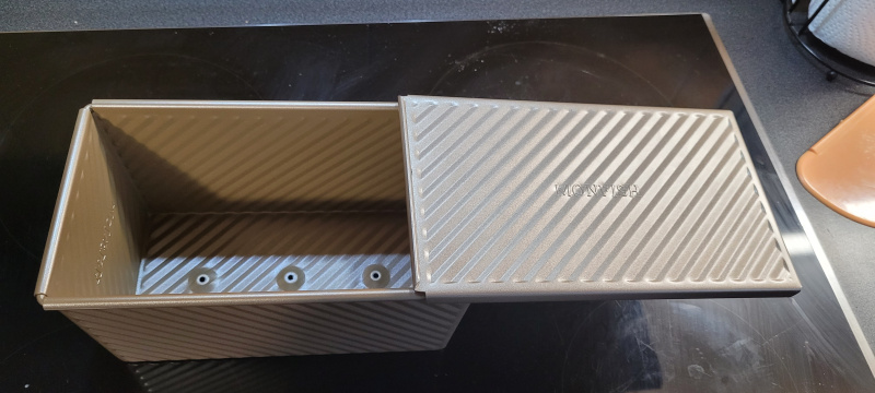 J’utilise un moule avec couvercle spécialement pour ce genre de pain mais un moule à cake ira très bien aussi. La différence sera un aspect plus brioche dû à l’absence de couvercle