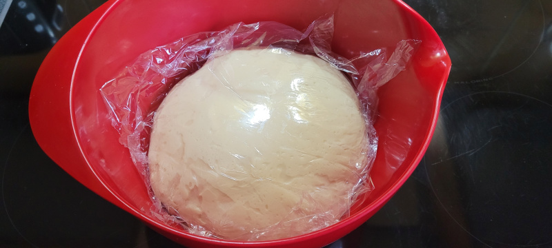 décuvez la pâte et mettez la dans un récipient, filmez au contact